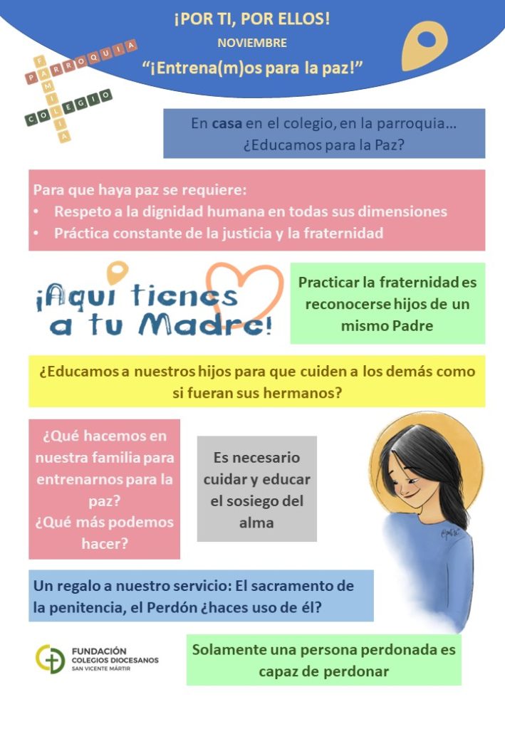 Os animamos a leer esta infografía para poder compartir con vuestros hijos, de manera muy sencilla, esta reflexión que ya están trabajando con el profesorado durante el mes de noviembre: «Entrena(m)os para la Paz».