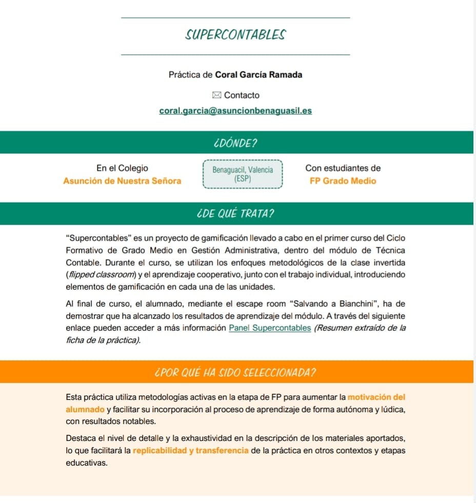 Esta práctica fue seleccionada como experiencia educativa inspiradora en julio de 2020 por INTEF. (Ministerio de Educación y Formación Profesional).