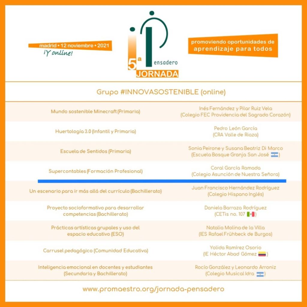 Nuestra profesora Coral Garcí­a fue invitada a participar en la V Jornada Pensadero, bajo el lema “Promoviendo oportunidades de aprendizaje para todos”, que organiza la Fundación Promaestro, tras seleccionar 27 prácticas educativas de España y Latinoamérica.
