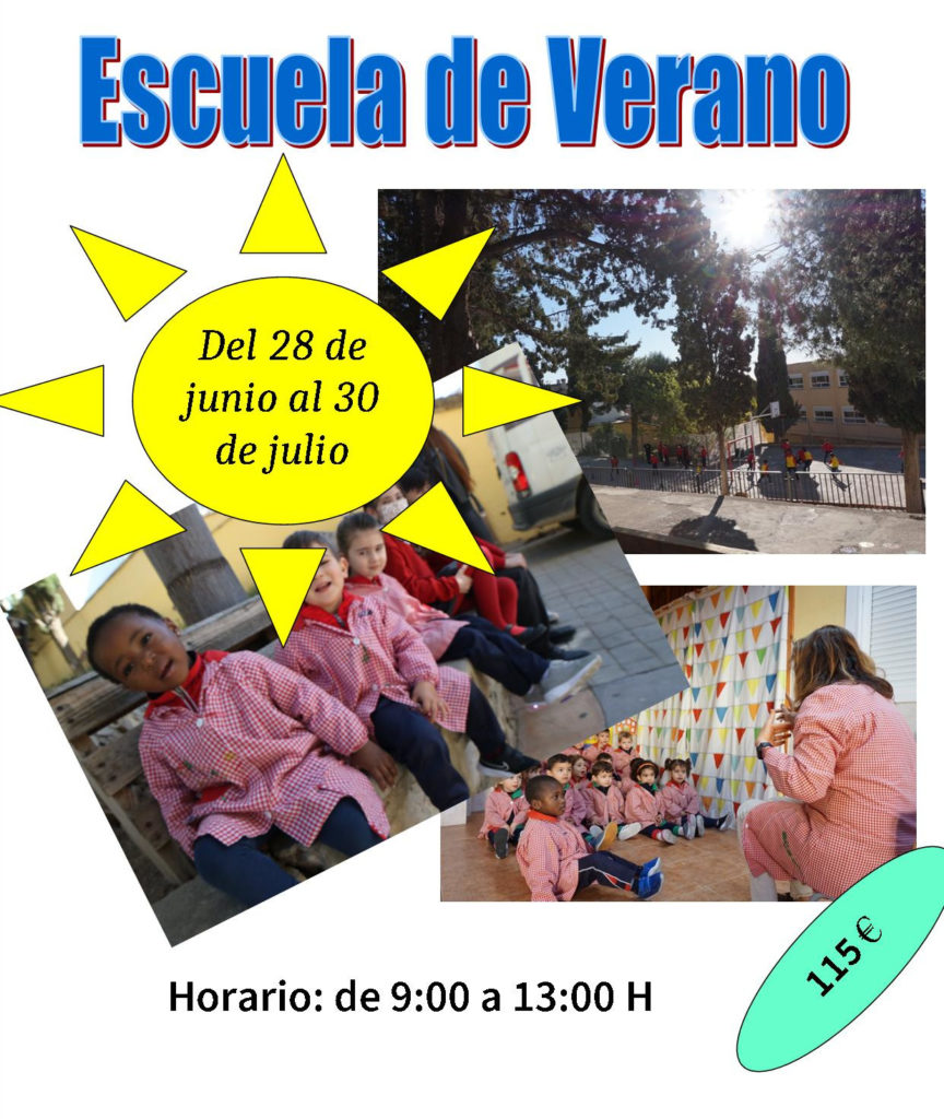 La escuela de verano empieza el lunes 28 de junio, y finaliza el viernes, 30 de julio. El horario es de 9:00 H a 13:00 H, de lunes a viernes.