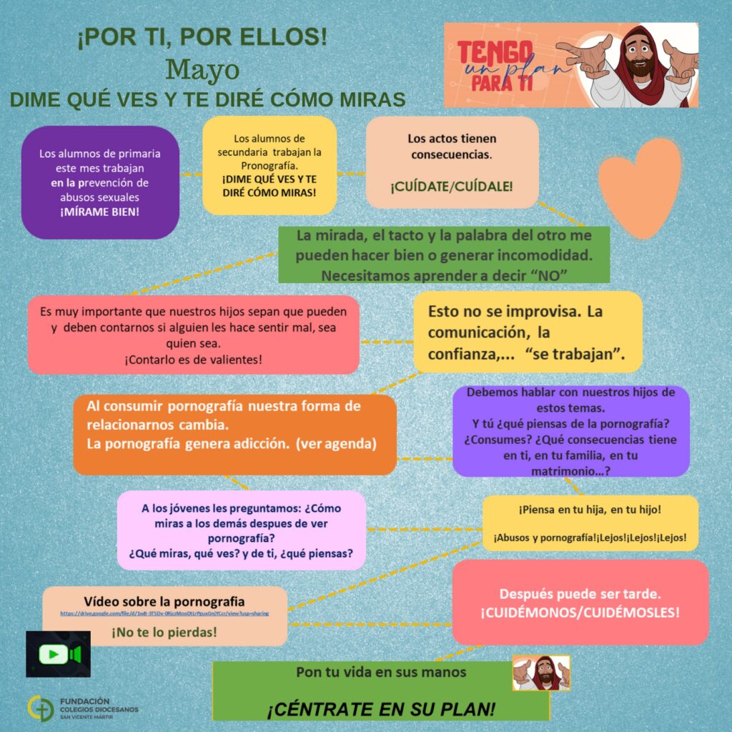 Os invitamos a leer y compartir en familia la infografía del mes de mayo, dentro de nuestro proyecto “¡POR TI, POR ELLOS!”: “Prevención de abusos sexuales” y “La pornografía”.